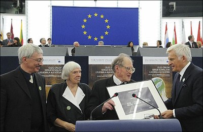 Позвольте мне от имени общества «Мемориал» поблагодарить Европейский парламент за высокую награду – премию имени Сахарова.