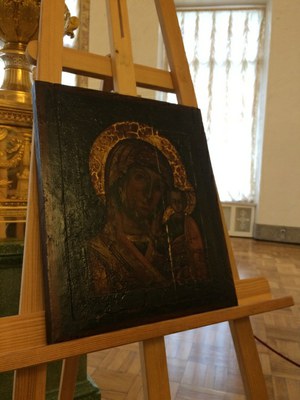 На иконе, а также на трех других вещах – вазах и книге – инвентарные номера Екатерининского и Александровского дворцов. Все эти предметы вернулись в Царское Село благодаря супругам Хармзен из Мюнхена, которые решили восстановить историческую справедливость и передали их в дар музею.