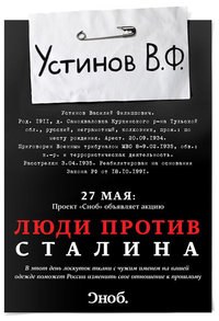 Проект «Сноб» объявляет акцию «Люди против Сталина». Она начнется утром 27 мая, когда мы прикрепим к своей одежде лоскутки ткани с именами людей, погибших в результате сталинских репрессий. Мы предлагаем всем присоединиться к этой акции.