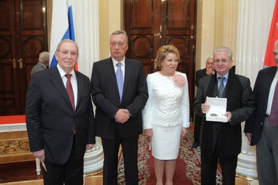 От имени почетных граждан Санкт-Петербурга А. Гранова и М. Пиотровского поздравила Людмила Вербицкая. Она подчеркнула, что Анатолия Михайловича и Михаила Борисовича объединяет глубокая любовь к Отечеству и нашему городу, служение своему делу с полной отдачей сил, огромный талант и глубокая интеллигентность.