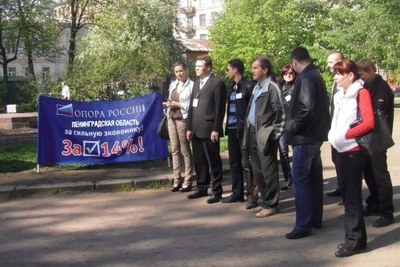 Как сообщает сайт организации, вчера на прямую связь с участниками пикета в Петербурге вышли региональные отделения ОПОРЫ РОССИИ из Липецка, Красноярска, собравшиеся на центральных площадях городов. "<...> Увеличение налогов в кризисный период, когда прибыль на грани окупаемости, мало соотносится с поддержкой предпринимательства со стороны государства. Все это привело к росту недоверия к власти со стороны малого бизнеса, снижению уровня заработной платы работников системы малого предпринимательства, сокращению коллективов и уже к разорению предприятий», - заявил вчера на пикете первый заместитель председателя Санкт-Петербургского отделения ОПОРЫ РОССИИ Андрей Горюнов.