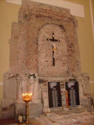 Справа в храме были зажжены свечи рядом с панно с именами всех погибших в авиакатастрофе. Под занавес службы были зачитаны все 96 фамилий и после прочтения каждой зажигались по одной свече. Генеральный консул Республики Польша в Санкт-Петербурге Ярославом Дроздом зажег свечи после произнесения имен погибших президентской четы - Леха и Марии Качиньских.