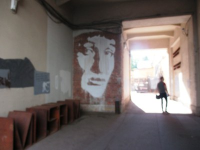 Именно здесь появилось изображение Ахматовой – своеобразный стрит-арт (идея и воплощение архитектора Сергея Падалко). Средства на этот проект собирали способом краудфандинга: провели в Шереметевском саду аукцион объектов, которые передали музею разные художники и которые в разные годы в музее выставлялись.