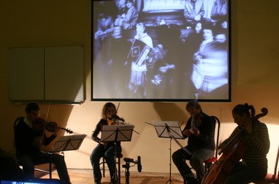 Кульминацией вечера стала презентация нового проекта Михаила Крутика. Это музыкальное сопровождение всем нам хорошо известных документальных кадров, на которых запечатлены митинги конца 1980-х, проходившие у Казанского собора. На кадрах хроники мелькают Юлий Рыбаков, зачитывающий какой-то документ, Леонид Гусев, водружающий флаг, Ростислав Евдокимов. Кадры были собраны в немой фильм «Хроника Перестройки» и сопровождались «живой музыкой», исполненной струнным квартетом. Участники вечера оказались первыми зрителями этого музыкального перфоманса.Исполнители: Михаил Крутик - 1-я скрипка; Виктория Велькова 2-я скрипка; Алексей Богорад – альт; Елена Григорьева – виолончель.