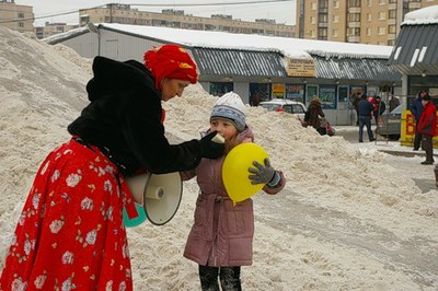Вчера, 14 февраля, на Хасанском рынке состоялись народные гуляния в честь сразу трех праздников - Масленицы, дня Святого Валентина и Восточного Нового года. Предприниматели угощали пришедших блинами, бутербродами и чаем, дети катались с горки, а главным событием гуляний должно было стать торжественное сжигание масленичного чучела, которое предприниматели установили на снежной горке.