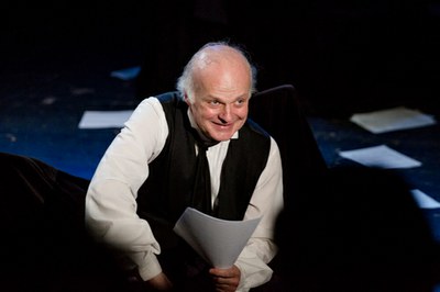 – Автор идеи всех трех спектаклей – народный артист России создатель и художественный руководитель Пушкинского театрального центра, народный артист России, поэт и пушкинист, Владимир Рецептер, – рассказывал юбиляр. – Для постановки Владимир Эммануилович пригласил заслуженного деятеля искусств Республики Карелия Андрея Дмитриевича Андреева. Кто предложил мою кандидатуру в качестве исполнителя, не знаю, не допытывался. Спектакль «История села Горюхина» готовился два с половиной месяца. Два с половиной месяца я ходил по Фонтанке от Молодежного театра до Большого драматического, где тогда тоже работал, и учил текст. Текста много, знать его нужно назубок. Пушкина пересказывать своими словами нельзя. Спектакль сделали за семь репетиций.