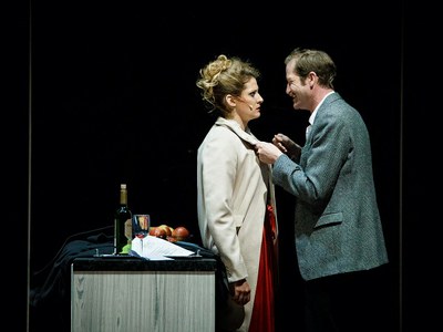 А новая форма в том, что чуть ли не главными персонажами становятся не сами герои, а их смартфоны. Они не только средство общения, они являются нам большими видеоизображениями на сцене, демонстрируют набиваемый в режиме on-line текст переписки (благо в ТЮЗе наконец-то появился wi-fi). Экраны смартфонов первыми сообщают нам о настроениях и реакции главных героев – Торвальда и Норы, фру Линде, Крогстада. Фиксируют их селфи и сиюминутное настроение. Таким образом, найденный режиссерский прием превращается в новый способ существования всех участников спектакля. Человек и его смартфон. Без него не выходит диалога. Герои разучились понимать друг друга без этого технического посредника.