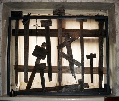 Вместе с Научно-информационным центром «Мемориал» мы – Музей политической истории – сделали интересную, как мне кажется, выставку. Она называлась «Искусство Гулага: По обе стороны тюремной двери». Там экспонировалась реальная тюремная дверь, которая хранится в фондах «Мемориала», привезенная с Соловков, с глазком, натуральная, очень колоритная дверь. Эта дверь разгораживала две части пространства этой выставки. На одной части экспонировались хранящиеся, в основном, в архиве «Мемориала» вот эти самые предметы творчества и искусства гулаговского. А на другой части – рисунки Данцига Балдаева, возможно вам знакомо это имя. Он был самодеятельным художником, а также, по его версии, сыном бурят-монгольского фольклориста и этнографа. Арестованного и погибшего в заключении. Но сам он был совершенно по другую сторону – он был охранником и рисовал рисунки, связанные с повседневной жизнью заключенных, с пытками, обысками, арестами и т.д. Его альбом был опубликован в Германии и назывался «Будни Гулага». Но выглядели все его рисунки как руководство к действию, совершенно иначе, чем работы заключенных. И была очевидна разница между творчеством людей, которые в тех условиях выживали и путались сохранить в себе что-то человеческое, сохранить себя, и теми рисунками Балдаева по другую сторону двери. И функция двери была очень интересной – она реальный экспонат и концептуальная деталь, разделяющая пространство выставки, она позволила создать концепцию этой выставки [Концепция выставки была разработана В.В.Иофе, руководителем НИЦ «Мемориал»].