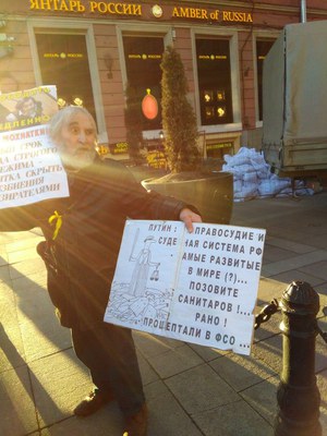 Седовласый, с окладистой бородой, небольшого роста, в футболке с оппозиционной символикой, надетой сверху на куртку, с плакатом в руках Игорь Андреев — непременный участник всех одиночных пикетов, всех акций оппозиции. Статус блокадника и возраст не спасали: Степаныча задерживали чаще других.