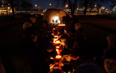 Если отменить еще 23 февраля - праздник, основанный только на устаревшей мифологии и не имеющий под собой вообще никакой исторической даты, то можно ввести сразу два новых праздника.Фото отсюда. Акция центра "Белое дело" на Троицкой площади 7 ноября 2013, на которой у Соловецкого камня зажгли 1000 свечей в память о человеческих жертвах в России в период с октября 1917 до апреля 1953, осталась незамеченной ведущими СМИ.