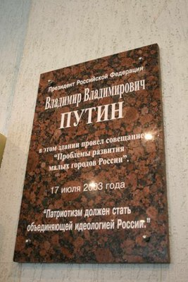 «Кирпичников рассказывал, что раньше, когда по городам и весям России проезжали цари-батюшки, губернаторы устанавливали мемориальные доски там, где они побывали. Эту идею поддержал тогдашний глава района Алексей Савин, и в день рождения Путина, 7 октября 2004 года, доску открыли», — рассказала госпожа Малышева.