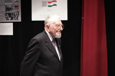 Господин Ференц Надь-Ребек, генеральный консул Венгрии в Петербурге, открывая круглый стол, сказал: «Уважаемые гости, дорогие друзья! На сегодняшнем мероприятии мы отдаем дань памяти важному событию истории Венгрии. 60 лет назад в Будапеште вспыхнула революция против угнетения и самоуправства. Как это часто случается в истории, инициатором восстания стала молодежь. 60 лет назад, в октябре 1956 года, во время не простого периода на улицу вышли обычные молодые люди. События требовали храбрости и героизма, поэтому это молодое поколение, не раздумывая, принесло свои жизни в жертву свободе и независимости. Наш долг отдать дань почета и благодарности истинным героям революции, за их отвагу и любовь к родине. Мы должны помнить, что данная нам сейчас свобода есть у нас и благодаря им. Также мы отдаем дань почета и благодарности тем, кто поддерживал революцию за пределами Венгрии. Бывало, что эти сторонники, своей храброй борьбой за дело венгерской революции, как и в этой стране, жертвовали собственным будущим и свободой. 1956 год является разделительной линией Венгерской истории. Те, кто лично пережил эти события ждали и жаждали, чтобы память о случившемся получила достойное место в истории. А те, кто родился после 1956 года, жаждали жить при такой же свободе, как и их ровесники в западной Европе. Поэтому присоединение к Евросоюзу после крушения диктатуры считалось само собой разумеющимся».