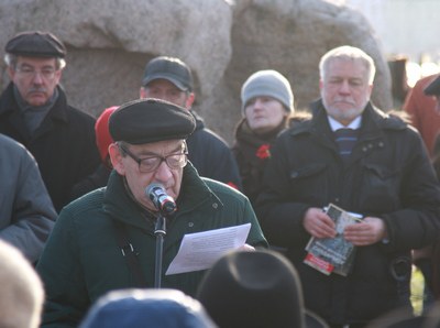 Вся деятельность нашего общества сводится к сохранению памяти о терроре и к оказанию социальных, культурных и правовых услуг лицам, пострадавшим от него. Сейчас, в 2018, за редчайшим исключением, это уже не сами жертвы террора, а их дети. Многие из них сейчас присутствуют здесь, на этом митинге. Дорогие друзья, когда-то вы прошли через тяжелую травму. У вас отняли отцов или матерей, или тех и других. Ваши семьи испытывали лишения, многие из вас прошли через детские дома, а кое-кто побывал в ссылке вместе с репрессированными родителями. Сегодня мы с вами уже немолоды. В течение 20 лет помещение на Разъезжей было нашим вторым домом. Теперь нас из этого дома выгоняют - точно так же, как некогда, после ареста родителей, многих из вас выселяли из ваших квартир, а кого-то вообще высылали из города. Когда-то власть в лице тогдашних так называемых правоохранительных органов лишила вас детства; сегодня, на склоне ваших лет, какие-то анонимные правоохранительные органы – не те ли же самые? - руками Комитета по имущественным отношениям вновь решили вас обездолить. В начале января они намерены выгнать вас на улицу.