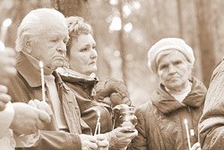 Деревья вырастали и принимали в свои стволы керамические портреты, проволоку, металлические таблички. Лес памяти молча рос и молча вбирал в себя знаки памяти. Левашовская пустошь стала стихийным народным мемориалом жертвам террора, народным братским кладбищем, многоголосым плачем о невинно погибших родных.