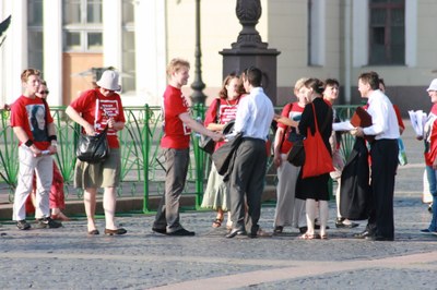 Дениэл Беир смог наблюдать заключительный момент акции на Дворцовой площади. Здесь встретились все 15 человек, которые прошли по Невскому проспекту в футболках с портретом Натальи Эстемировой, по пути они раздавали листовки с ее биографией и информацией о ее деятельности.