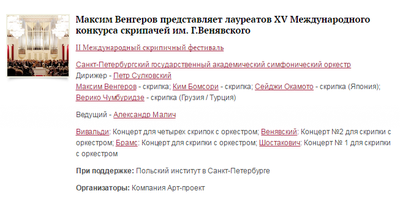 Концерт проводится в рамках II Международного скрипичного фестиваля в Петербурге. Его проведение поддерживает Польский институт.