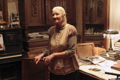 Вон видите, шкаф осколком, вон отлетел вот там кусок, я ничего не реставрировала. Портрет мамин, вот такой облезлый, который тоже попал в эту штуку, там все из рамы выскочило. Буфет тоже там, пианино… Осколки же летели. Поэтому вот эти все вещи, я не могу их выкинуть. Один шкаф я хотела вынести, его взяли и понесли. Ах, как будто человека выносят! Я сказала: «Нет, нет, нет, несите назад». Вот сюда его снова поставили. И я так прожила жизнь, что я не понимала, как можно покупать какую-то мебель. Это мои существа. Как я могу жить без этого ободранного шкафа, сами посудите. Я даже занавеску не могу сменить, потому что думаю: «Боже мой, как она тут красиво разорвалась».