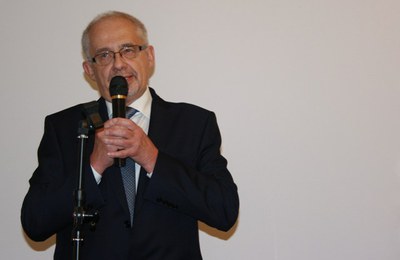 Пётр Марциняк выступает на открытии первой конференции "Чеслав Милоош и Россия". Музей Анны Ахматовой в Фонтанном доме, 3 декабря 2013. Внизу справа - Николай Иванов.