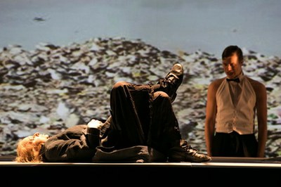 8 и 9 февраля 2014 в Петербурге на новой экспериментальной сцене Александринки состоялась давно обещанная премьера по мотивам абсурдистской пьесы "Старая дама высиживает" польского поэта, писателя и драматурга Тадеуша Ружевича.