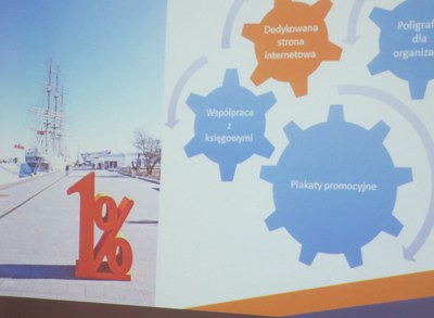 В Гдыне ЦНО ежегодно устраивает акцию для сбора этого одного процента в пользу НПО. Для этого создается специальный сайт, в общественном транспорте развешиваются плакаты, по городу распространяются листовки. Во всех госучреждениях Гдыни есть место для размещения такой рекламы. Сейчас ЦНО готовит акцию: в разные районы города направляются бухгалтера, сотрудники различных неправительственных организаций, которые совершенно бесплатно будут помогать гражданам заполнять налоговые декларации (обычно это платная услуга). Заполняя такую налоговую декларацию, житель Гданьска сможет перечислить свой 1 процент в ту организацию, которая помогла ему составить декларацию.