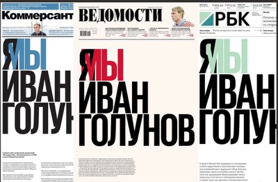 Коммерсантъ, РБК и Ведомости 10 июня 2019 выходят с совместным заявлением в поддержку журналиста-расследователя Ивана Голунова.