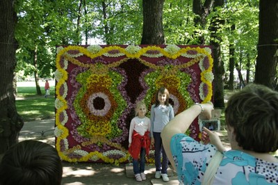 Тем временем извозчики направляются на чайную церемонию в одну часть Михайловского сада, либо в другую – обсуждать достоинство перевозимого шелка. Снова в путь, понятно, что долгий, но можно и ускориться. И тогда можно воспользоваться более экзотическим, воздушным видом транспорта. Пожалуй, одна из самых ярких инсталляций – сотканный из цветов «Ковер-самолет». Каждый, кстати, может воспользоваться: сесть на него и направиться в сторону своих эмоций и желаний (авторы усадьба Марьино).