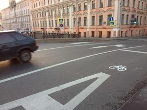 В редакцию Красивого Петербурга поступило анонимное письмо от петербургских велоактивистов, которые накануне превратили автобусную полосу на Горохорой улице в велодорожку, нарисовав вдоль неё соответствующую разметку.