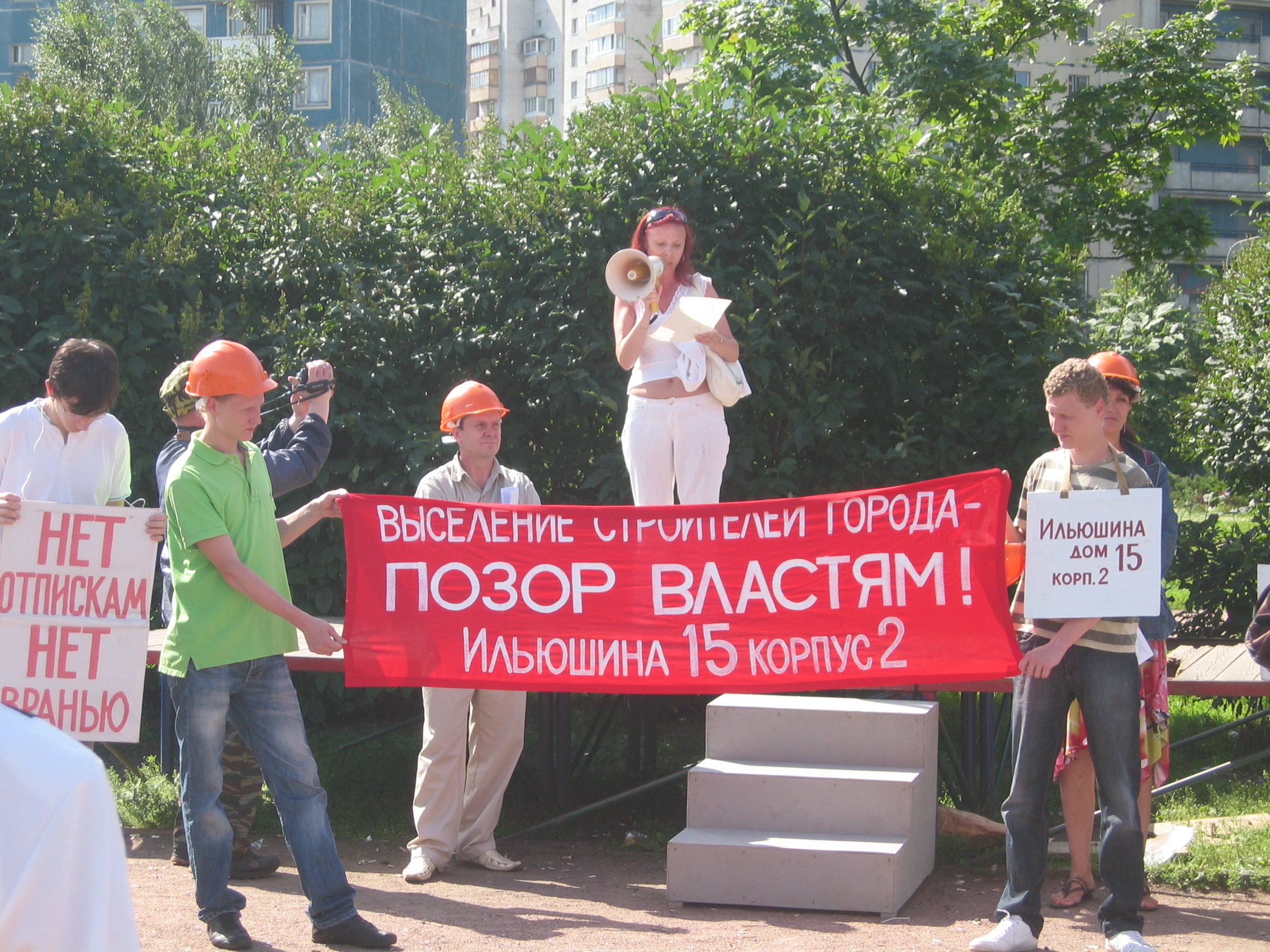 Вы здесь: Главная / Среда / Градозащита / Митинг выселяемых жителей дома 15 к.2 по ул. Илюшина. Фото автора.