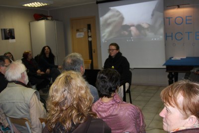 Екатерина Шмидтке – профессиональный фотограф, репортер «Коммерсанта» и других СМИ, выпускница мастерской известного фотографиа Павла Маркина на Факультете фотокорреспондентов Союза журналистов Санкт-Петербурга, двухгодичной школы профессиональных фоторепортеров. В съемке репортажей о воюющих курдах и в лагерях сирийских беженцев ее выручает знание арабского языка. На рабском Екатерина говорит свободно, учила его в Сирии. Говорит, что обучение в Сирии – единственное, что было доступно для нее. Влюбившись в арабский язык, Екатерина отправилась в Сирию, особо не вникая в состояние дел в стране, особенности режима и природу власти, политика девушку не интересовала. В 2011 году, когда в Сирии началась гражданская война, девушка осталась там, продолжая обучение. Рассказ Екатерины об этом периоде не содержит ни оценок, ни анализа ситуации в стране: чрезвычайное положение, его и гражданская война, начавшаяся в 2011 году, не изменили желания Екатерины продолжать обучение. Впрочем, до сих пор на территории воюющей Сирии остаются тысячи россиян. Так, без малого четыре года, до весны 2013, Екатерина более-менее спокойно (о гражданской войне упоминаний не было на презентации) проучилась, свободно передвигаясь из Дамаска в Алеппо и обратно.